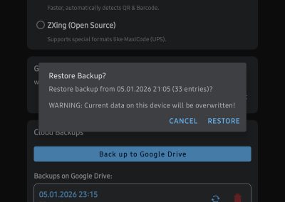 Scandora ist mehr als nur ein QR-Scanner. Es ist Ihr persönliches Archiv für digitale Informationen. Egal ob Sie WLAN-Zugangsdaten scannen, Produktpreise im Laden vergleichen (EAN) oder Visitenkarten (vCard) digitalisieren wollen – Scandora erkennt das Format sofort und bietet Ihnen die passende Aktion an